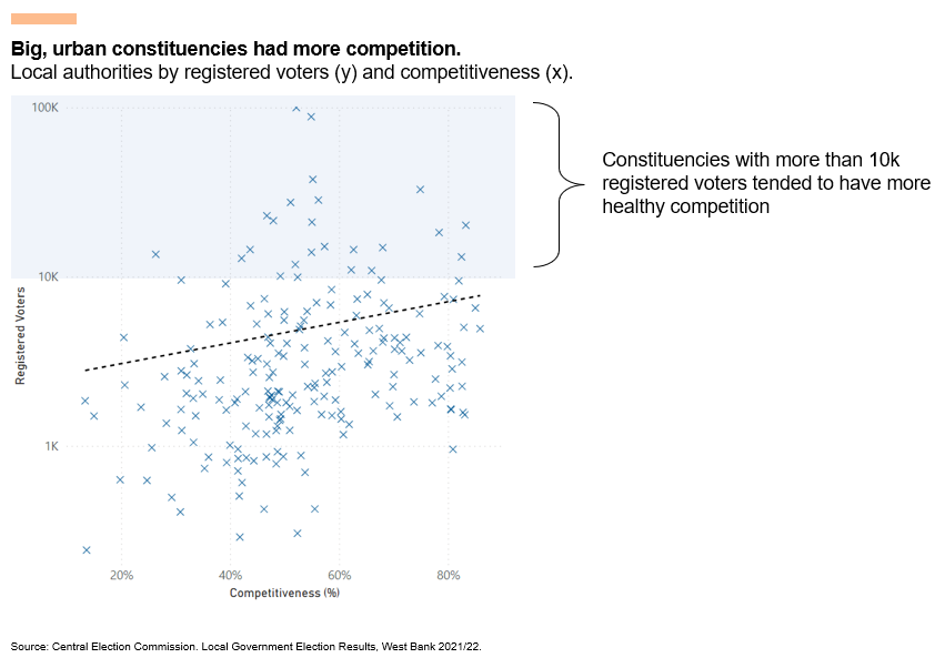 Once you adjust for population, the situation is a bit rosier. Populous urban areas - where most Palestinians live - tend to be more competitive than rural ones.