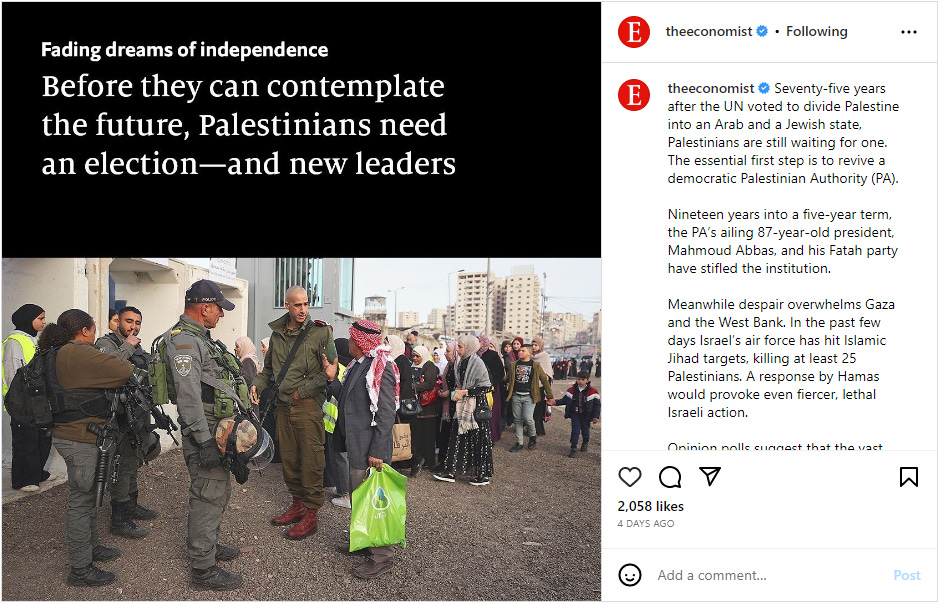 The Economist this week used the recent hostilities and the Nakba anniversary as a frame for reviewing the Palestinian condition. They conclude that democratic reforms including new leadership in the PA are the most probable way to re-integrate the Gaza Strip with the West Bank, and deal with the challenges of the conflict: